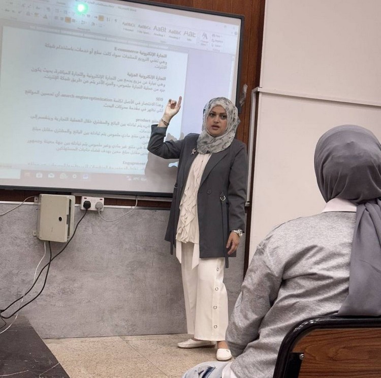 أدارت الورشة الأستاذ المساعد بسمة خليل نامق، وقدمت المدرس ابتهال زيد علي ورقتها العلمية حول الإطار القانوني للتجارة الإلكترونية في العراق، والتي تناولت مبادئ التسجيل والترخيص، حماية المستهلك، الدفع الإلكتروني، والمتطلبات القانونية المنظمة لعمل هذا القطاع. كما استعرضت المدرس فاطمة رضا عطية أبرز المصطلحات الأساسية في مجال التجارة الإلكترونية باللغة الإنكليزية وكيفية التعامل معها في الحياة الجامعية واليومية.