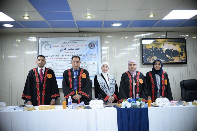 ناقشت كلية العلوم السياسية في جامعة بغداد، صباح يوم الاثنين الموافق 24 تشرين الثاني 2025، وعلى قاعة الدكتور جهاد الحسني، رسالة ماجستير للطالبة زينب محسن لعيبي الموسومة: